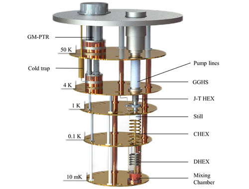 輕量化復合制冷機、mK溫區稀釋制冷機。